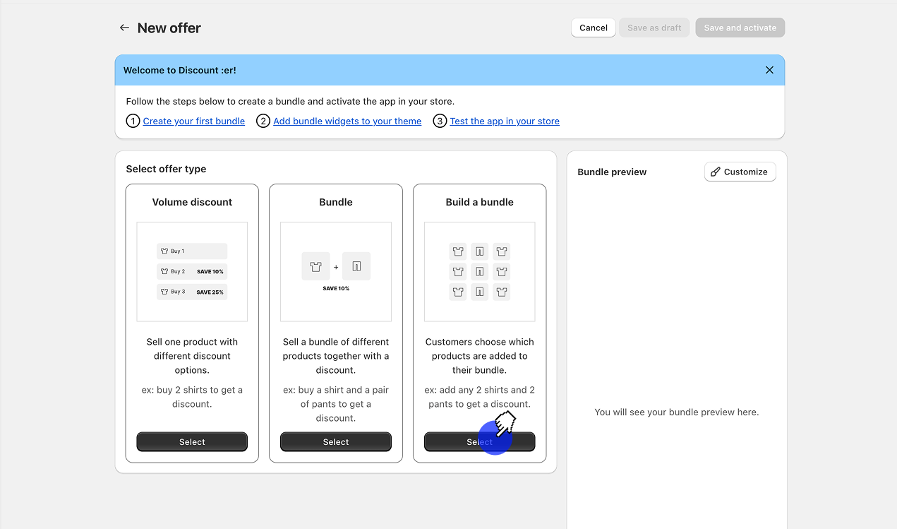 Click "Create a Bundle". Inside the New offer form, click "Build a bundle".