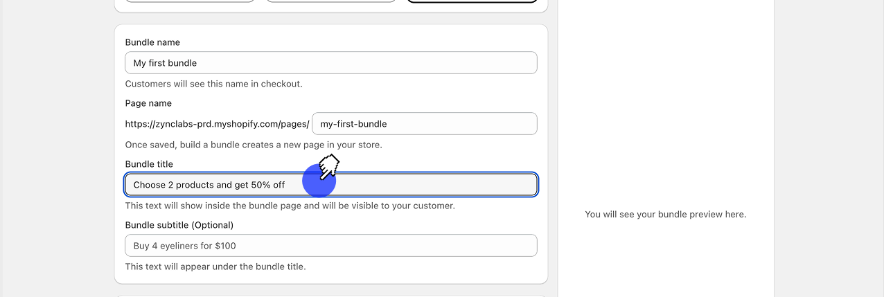Scroll down and give your bundle a name. This name will be used as the page name. You can adjust the slug if needed.