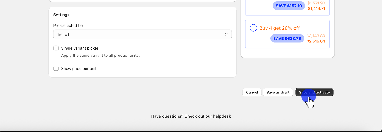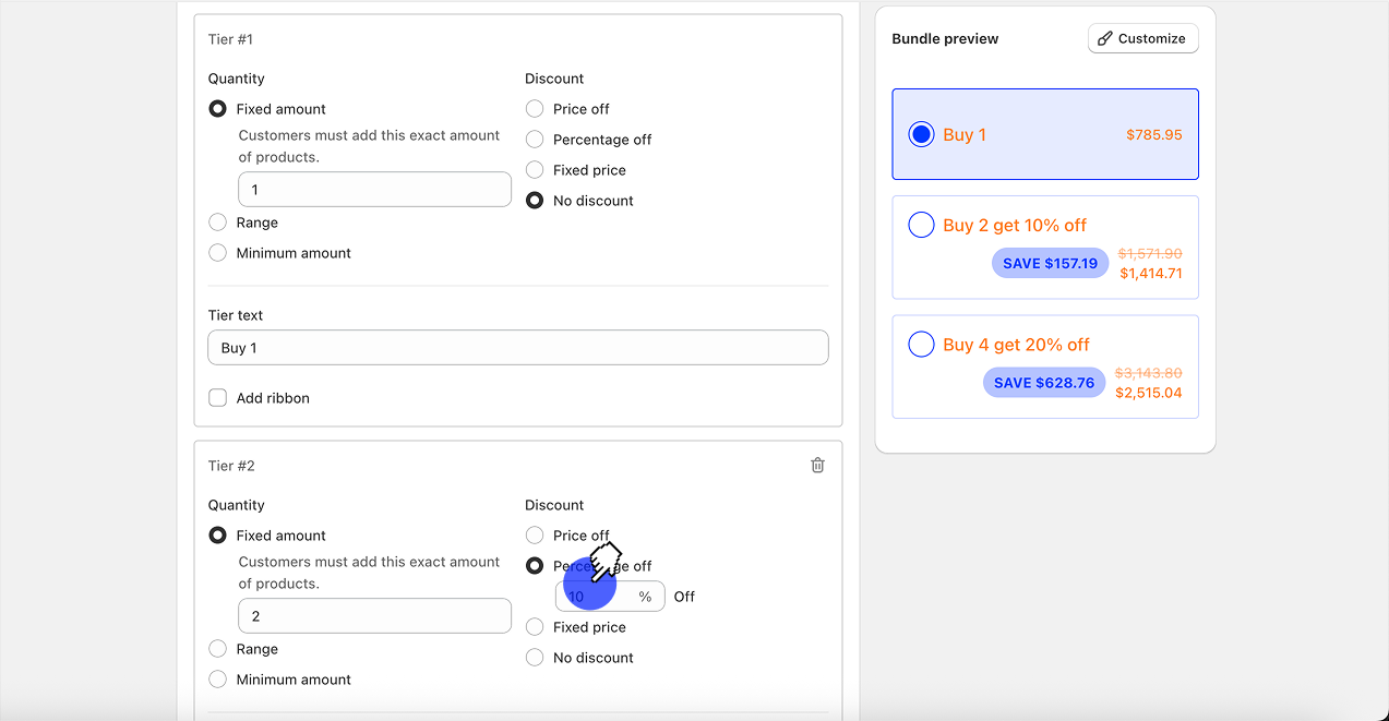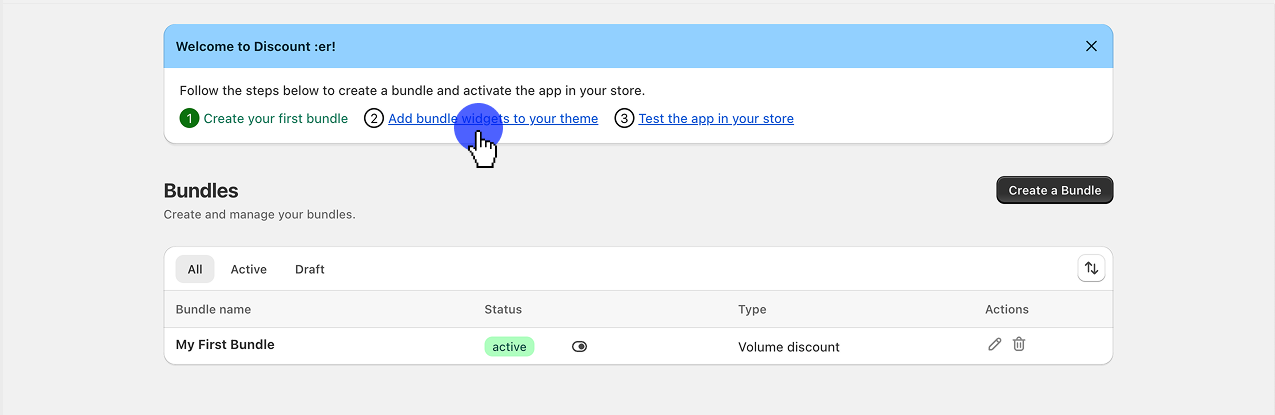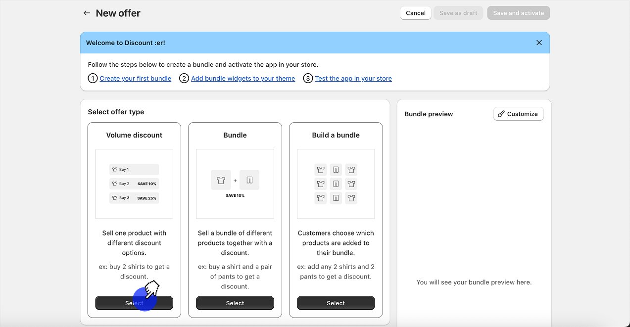 Click "Create a Bundle". Inside the New offer form, click "Volume discount".