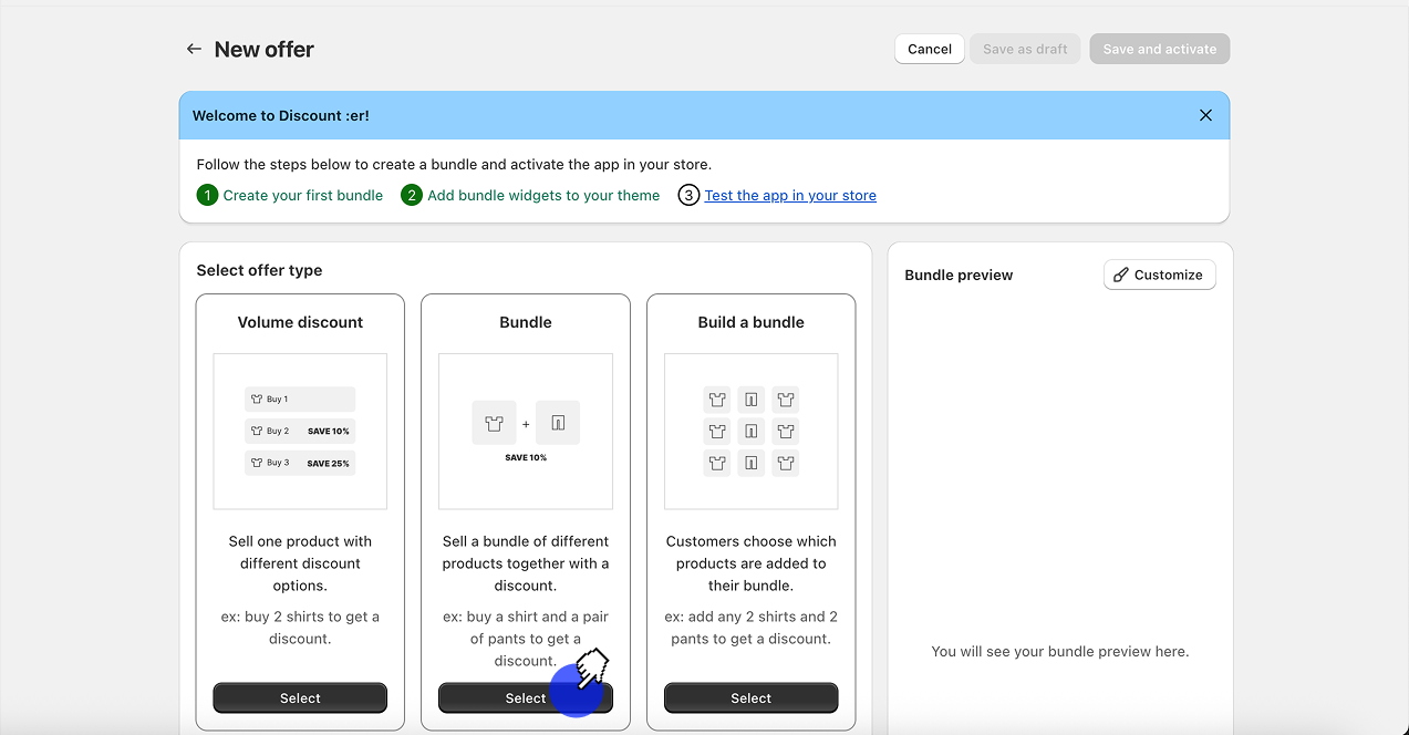 Click "Create a Bundle". Inside the New offer form, click "Bundle".